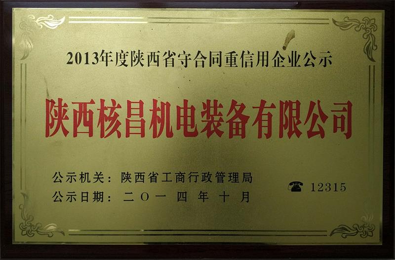 2013年度陜西省守合同重信用企業(yè)