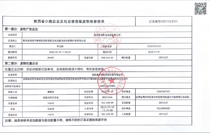 我公司屬于機(jī)電一體化、機(jī)械加工等產(chǎn)業(yè)的生產(chǎn)經(jīng)營(yíng)企業(yè),現(xiàn)階段主要的危險(xiǎn)廢物包括:油漆桶、廢機(jī)油、乳化液、噴漆、噴砂、油漆桶、廢機(jī)油、乳化液等危險(xiǎn)廢物,處置由陜西豫光城礦環(huán)??萍加邢薰境薪愚D(zhuǎn)運(yùn)及處理。噴漆、噴砂房等由公司投入大量資金進(jìn)行升級(jí)改造,在經(jīng)營(yíng)活動(dòng)中加強(qiáng)職工環(huán)保培訓(xùn),不斷提升職工環(huán)保意識(shí)。經(jīng)陜西中天環(huán)保有限公司監(jiān)測(cè),所排廢氣均達(dá)到國家標(biāo)準(zhǔn),為改善環(huán)境、大氣質(zhì)量作出積極的貢獻(xiàn)。