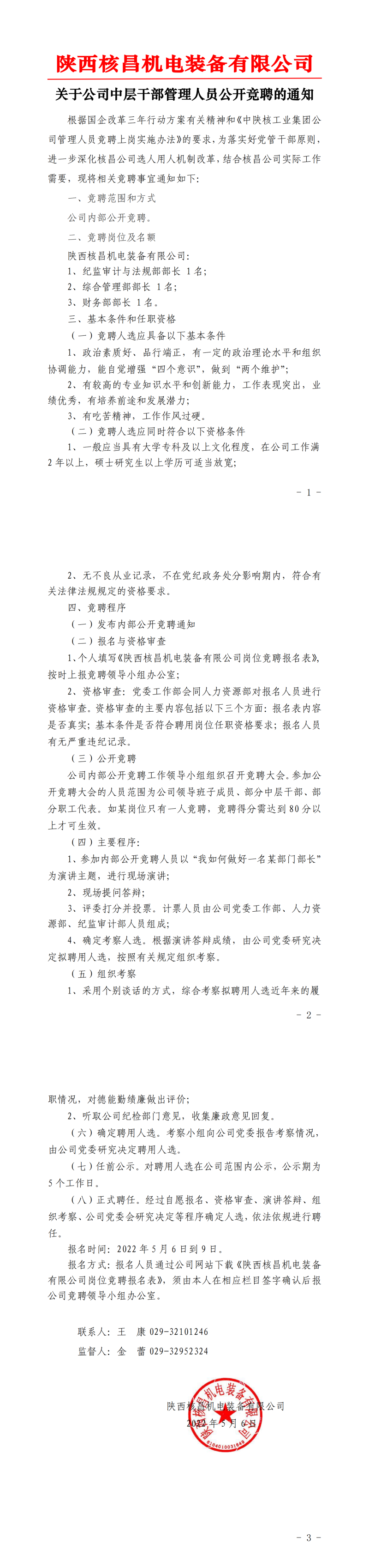 關(guān)于公司中層干部管理人員公開(kāi)競(jìng)聘的通知